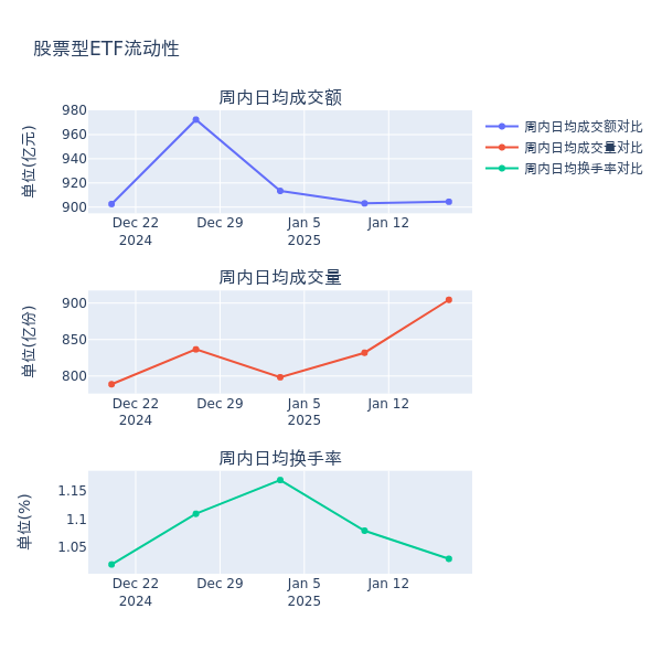 流动性方面,上周股票型ETF市集日均成交额加多0.1%,日均成交量加多8.7%,换手率减少0.05%。