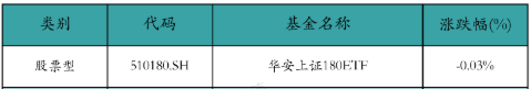 上周股票型ETF仅一只下落:华安上证180ETF(-0.03%)。细目见下表: